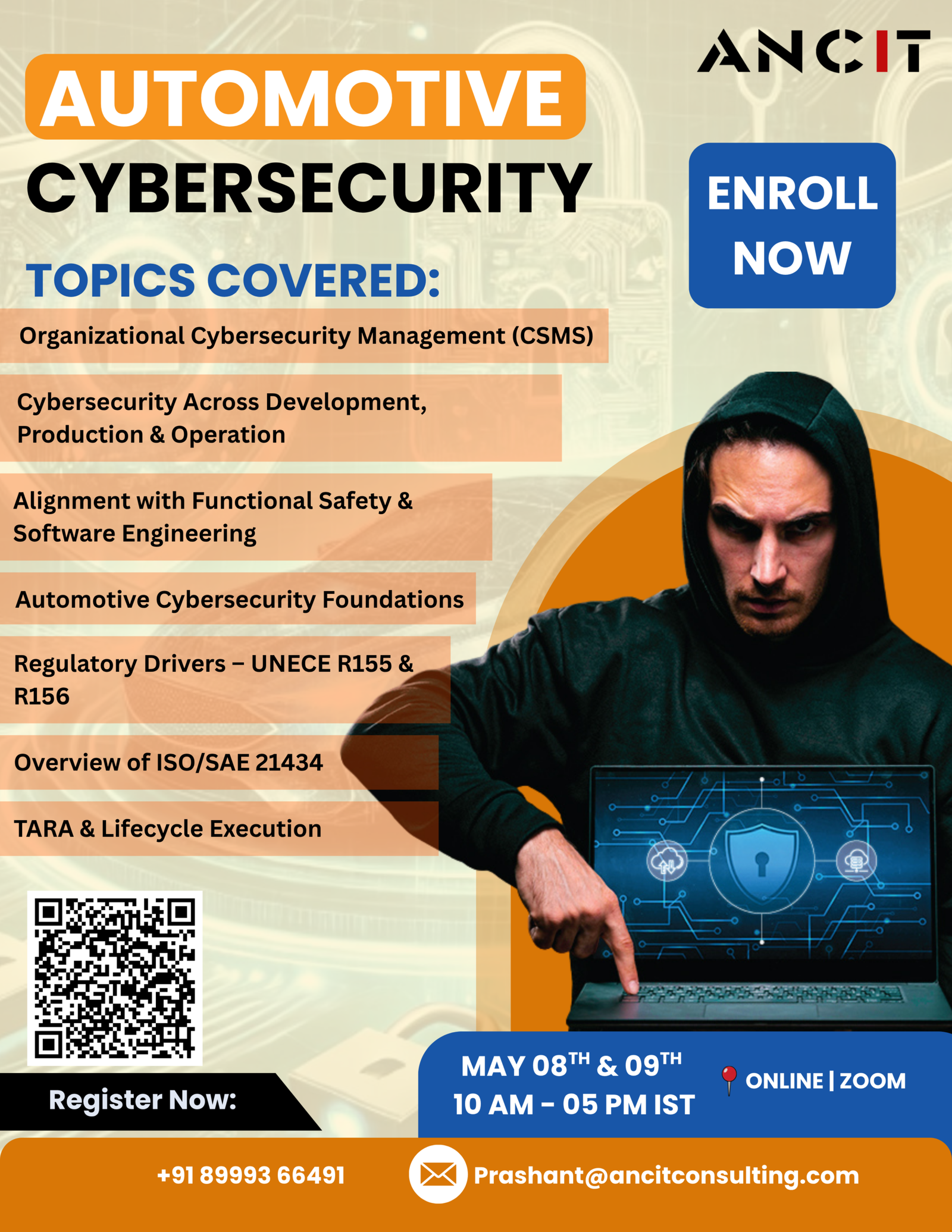Join ANCIT’s expert-led training program focused on real-world automotive cybersecurity implementation, standards, and risk management aligned with global regulations.